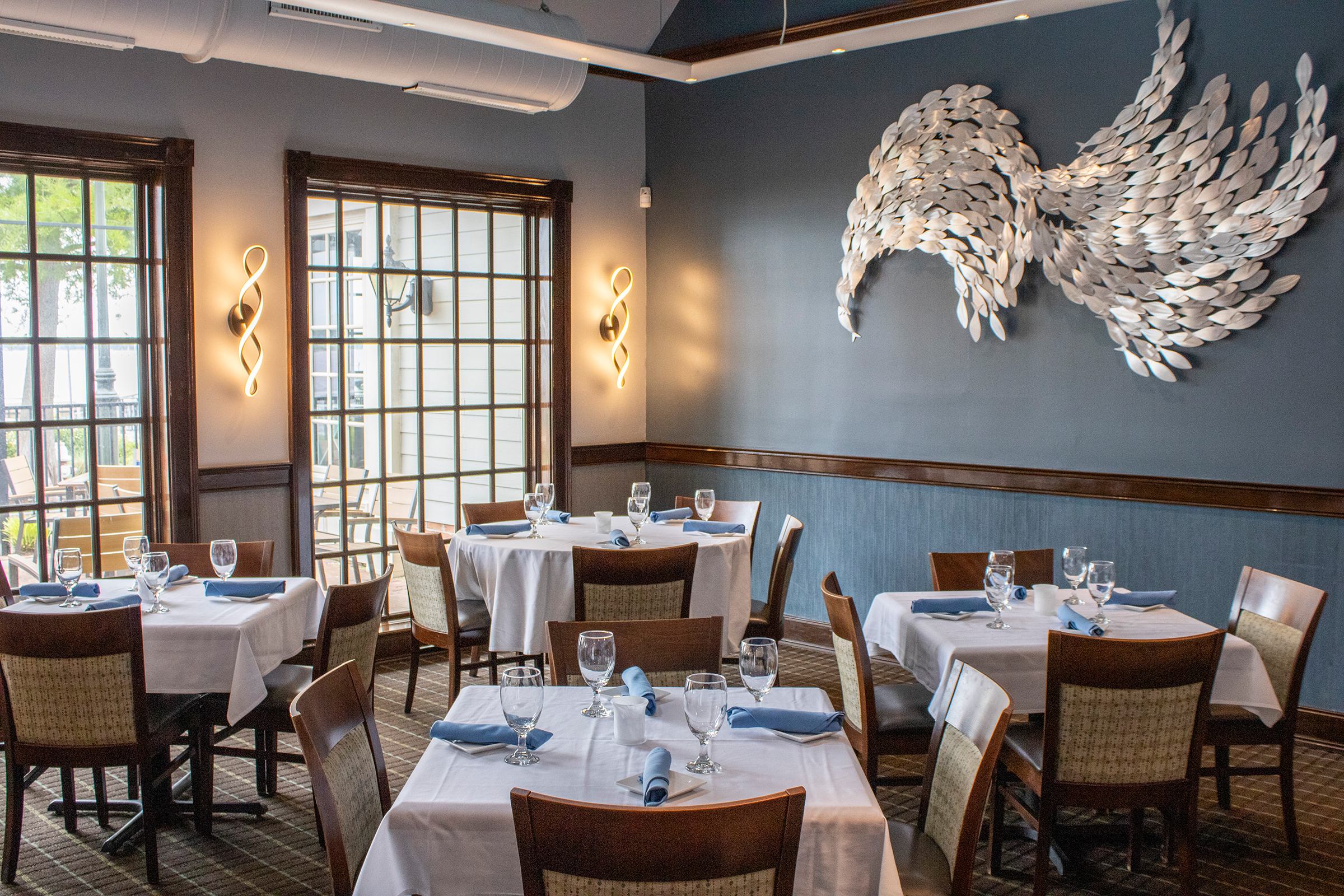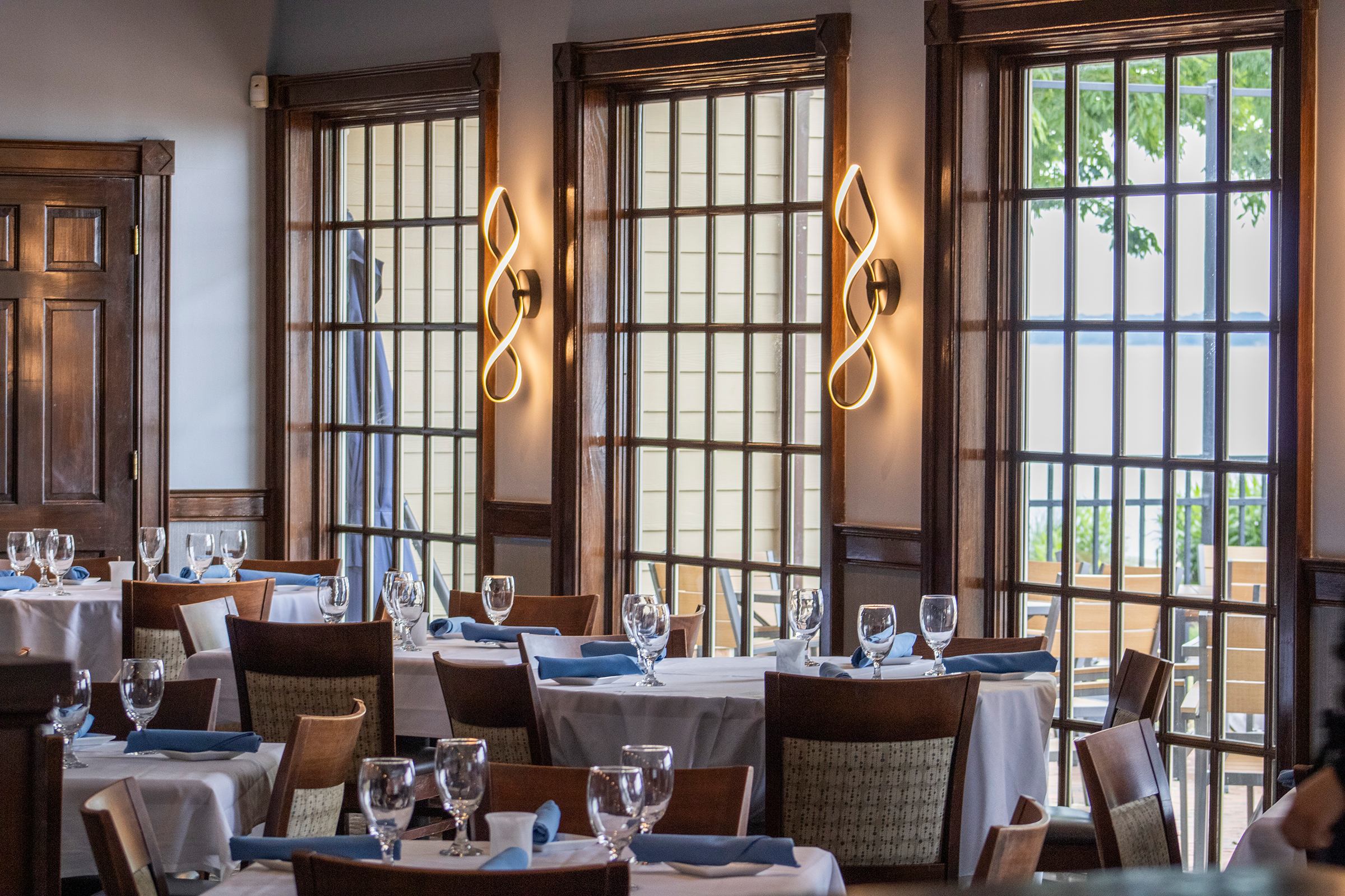 Riverwalk Restaurant overlooks the York River and offers incredible views of the Coleman Bridge and Yorktown Beach.
